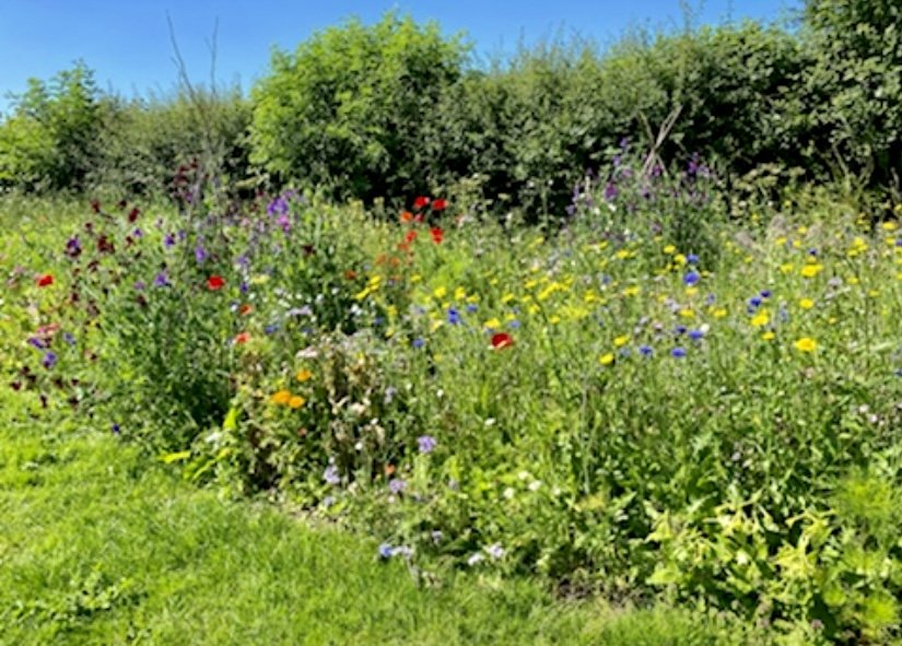 Large areas of paddock are left wild to support the wildlife and help biodiversity. The mix of grasses encourages invertebrates and gives a home to the voles and rabbits that I don’t want in my flower patch! This area is full of butterflies and bees during the summer months (when my chief helper, Luna the Labrador, isn’t charging around).
